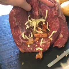 ④ イチボ肉に③とチーズを交互に数回に分けて詰める